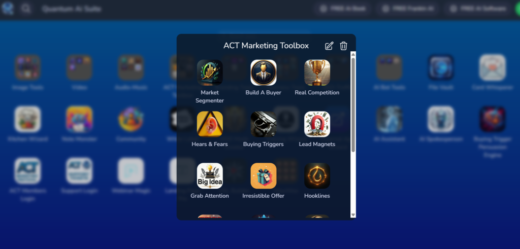 AI Quantum Suite is a collection of AI tools integrated into the ACT Protocol training system. Its primary goal is to help users plan, create, manage, and optimize online marketing assets more efficiently. Unlike generic AI tools built for broad use cases, AI Quantum Suite is positioned for marketing execution. The tools are intended to assist with tasks that marketers perform daily, such as content generation, messaging, funnel planning, ad copy development, and workflow automation. It is not marketed as a “push-button income” solution, but rather as a productivity and execution system designed to support trained users as they apply ACT Protocol strategies.How AI Quantum Suite Fits Into ACT Protocol